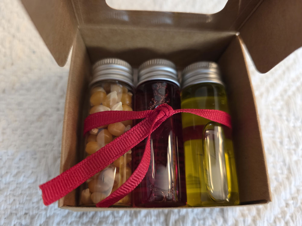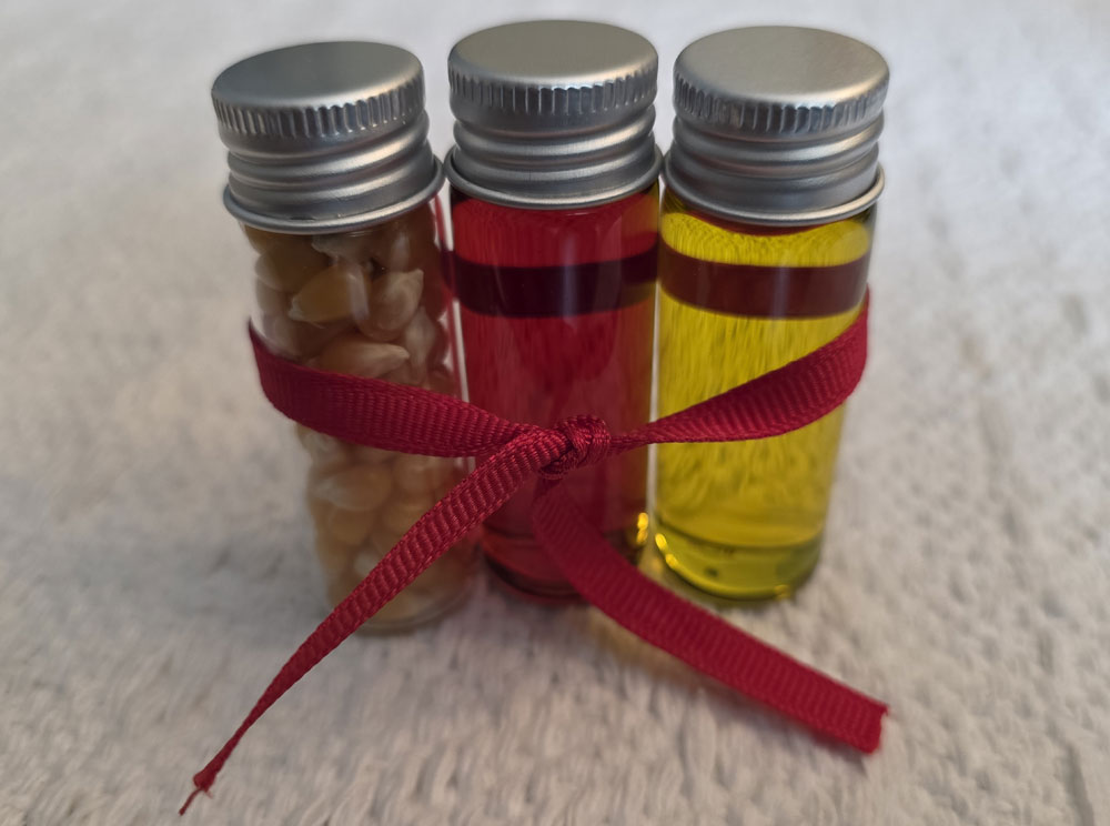 Oil signifies peace, harmony, and consecration.