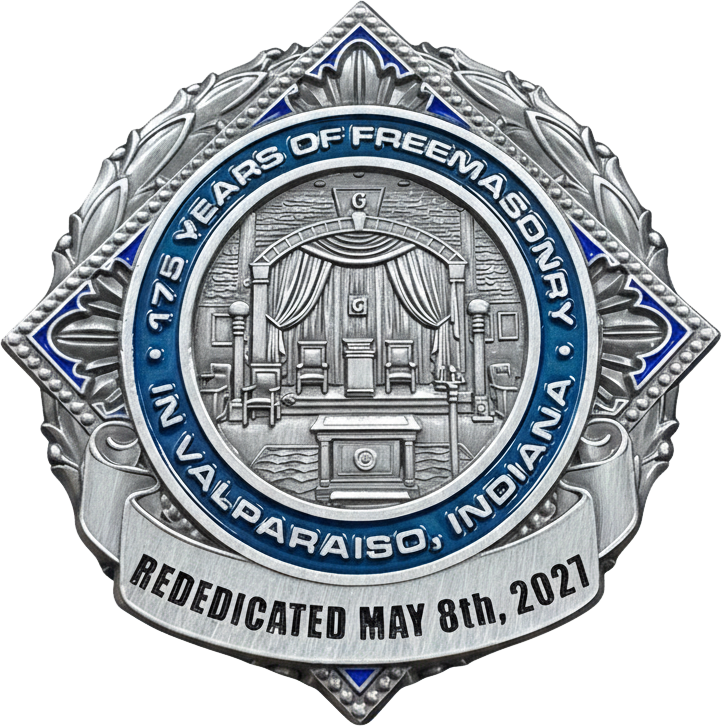 In honor of our 175th anniversary, we are proud to offer a limited-edition Commemorative Rededication Coin. The face of the coin depicts the Lodge building as of 2026, while the obverse displays a view to the East of our Lodge room interior.